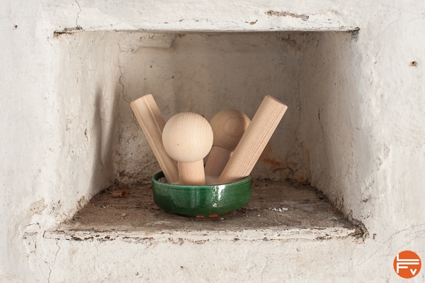 Elle est livrée avec vis et chevilles pour la monter sur support bois ou dur. Et ce sont les taquets classiques, cylindriques qui sont fournis en standard. D’autres formes existent toutefois (boules de 80 ou 100 mm de diamètre), que l’on peut acheter à part.