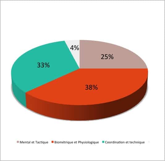 Magiera et son équipe confirment également (tout en les modulant) les hypothèses faites notamment par Olivier Guidi en 2002 ou Éric Hörst en 2003, d’une contribution relativement équilibrée du mental (25%), du physique (38%) et de la technique (33%) à la performance.